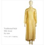 シルク アオザイ 共布パンツつき M/Lサイズ イエロー 無地 ベトナム製 オリジナル