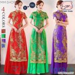 チャイナドレス ロング チャイナドレス風ワンピース アオザイ レース 刺繍 THKJ 半袖 衣装 パーティー 結婚式 コスチューム 舞台 おしゃれ きれいめ デイリー