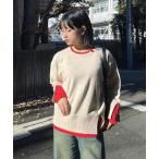 ニット セーターリブ重ねて配色レイヤードニットプルオーバー レディース