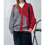 カーディガン配色ウェーブ切り替えカーディガン レディース