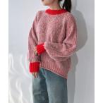 ニット セーター 球心あみあみ配色ニットプルオーバー レディース