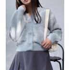 カーディガン キラキラリボンボタン フェザーVネックカーディガン レディース