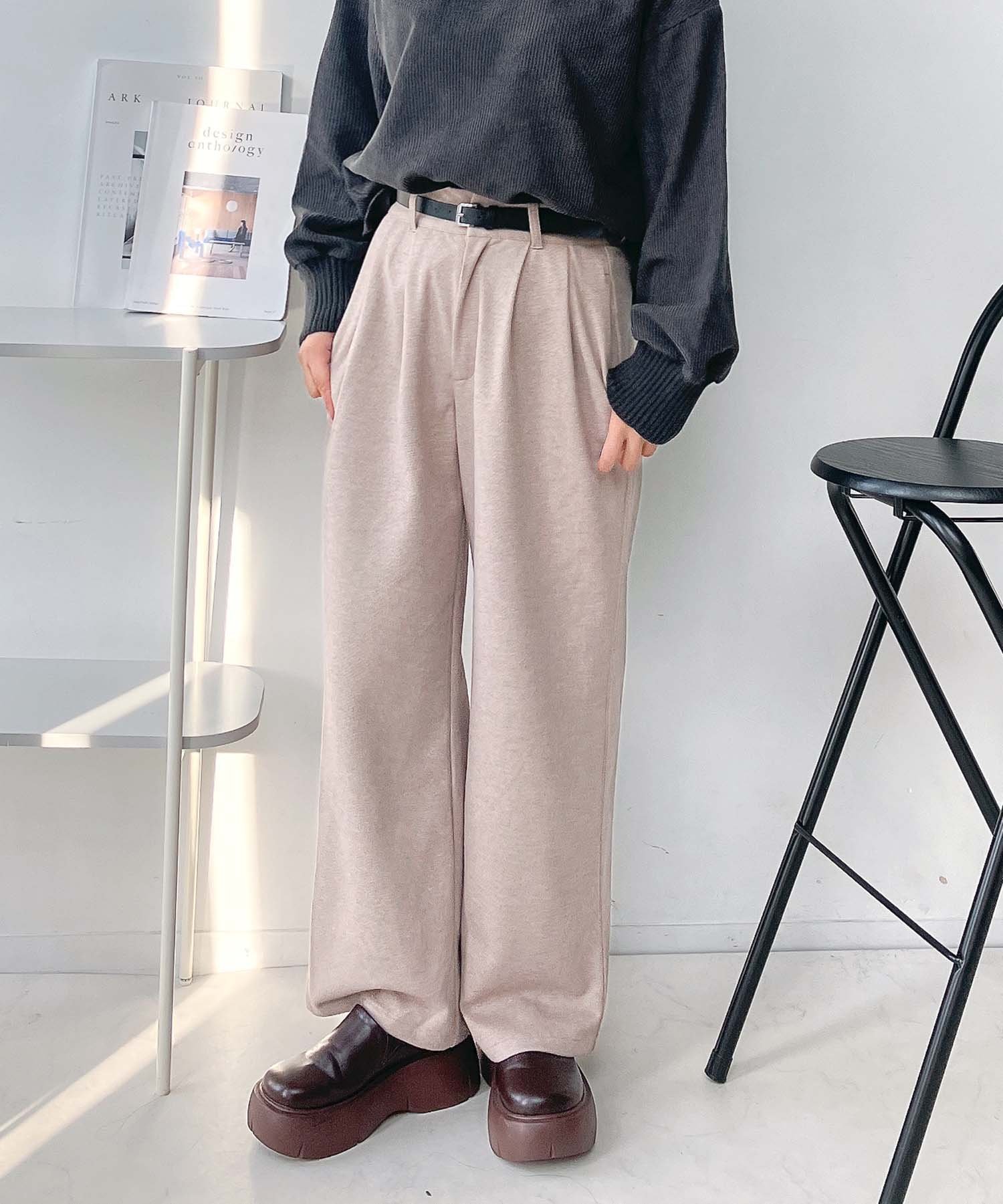 【SALE/44%OFF】AS KNOW AS plus ♪ベルト付き スウェード ストレートパンツ アズノゥアズプラス パンツ スラックス・ドレスパンツ ブラック グレー ブラウン【送料無料】