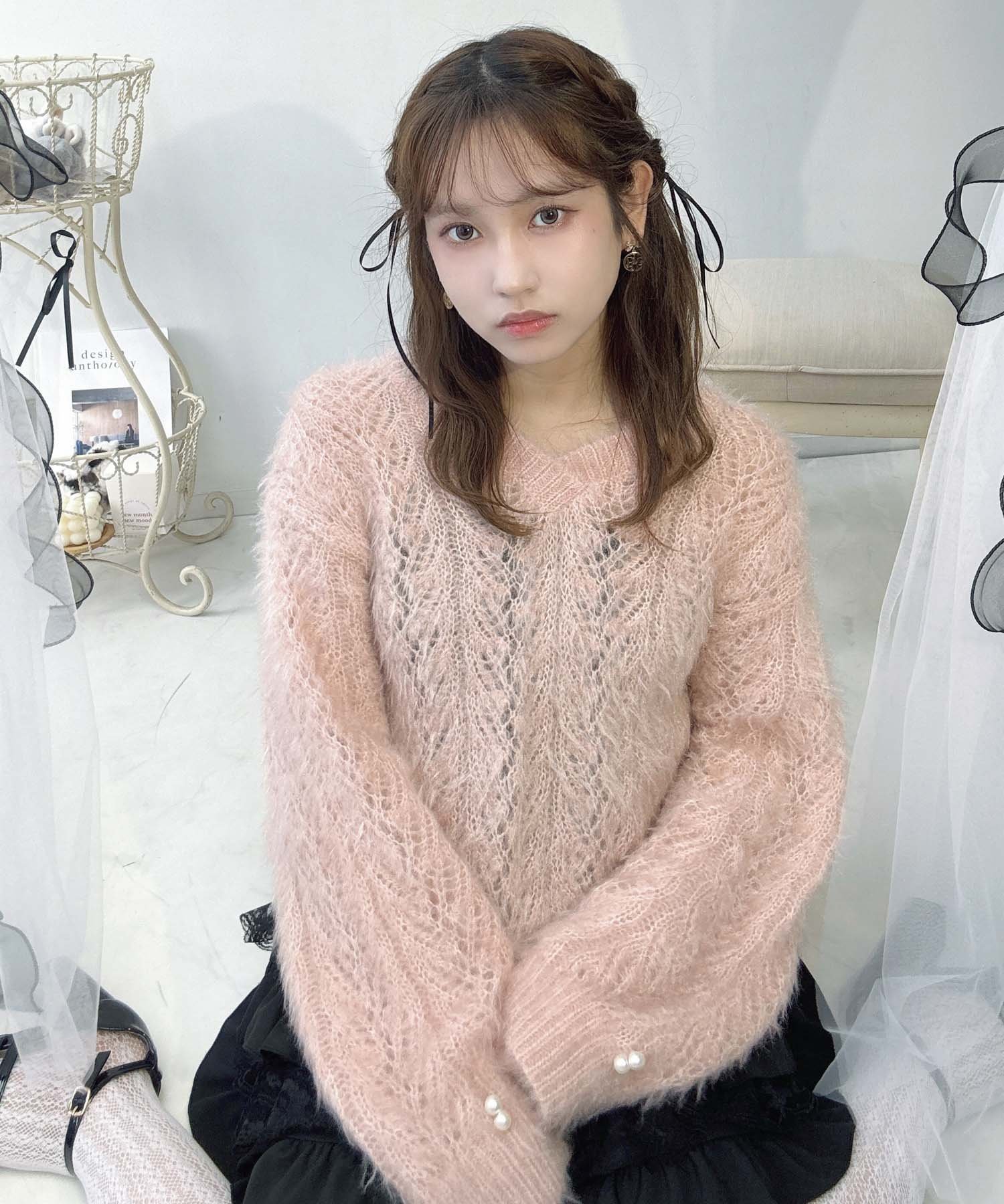 【SALE/48%OFF】AS KNOW AS plus ♪袖フェイクパール フェザーVネックニットプルオーバー アズノゥアズプラス トップス ニット グレー ピンク【送料無料】