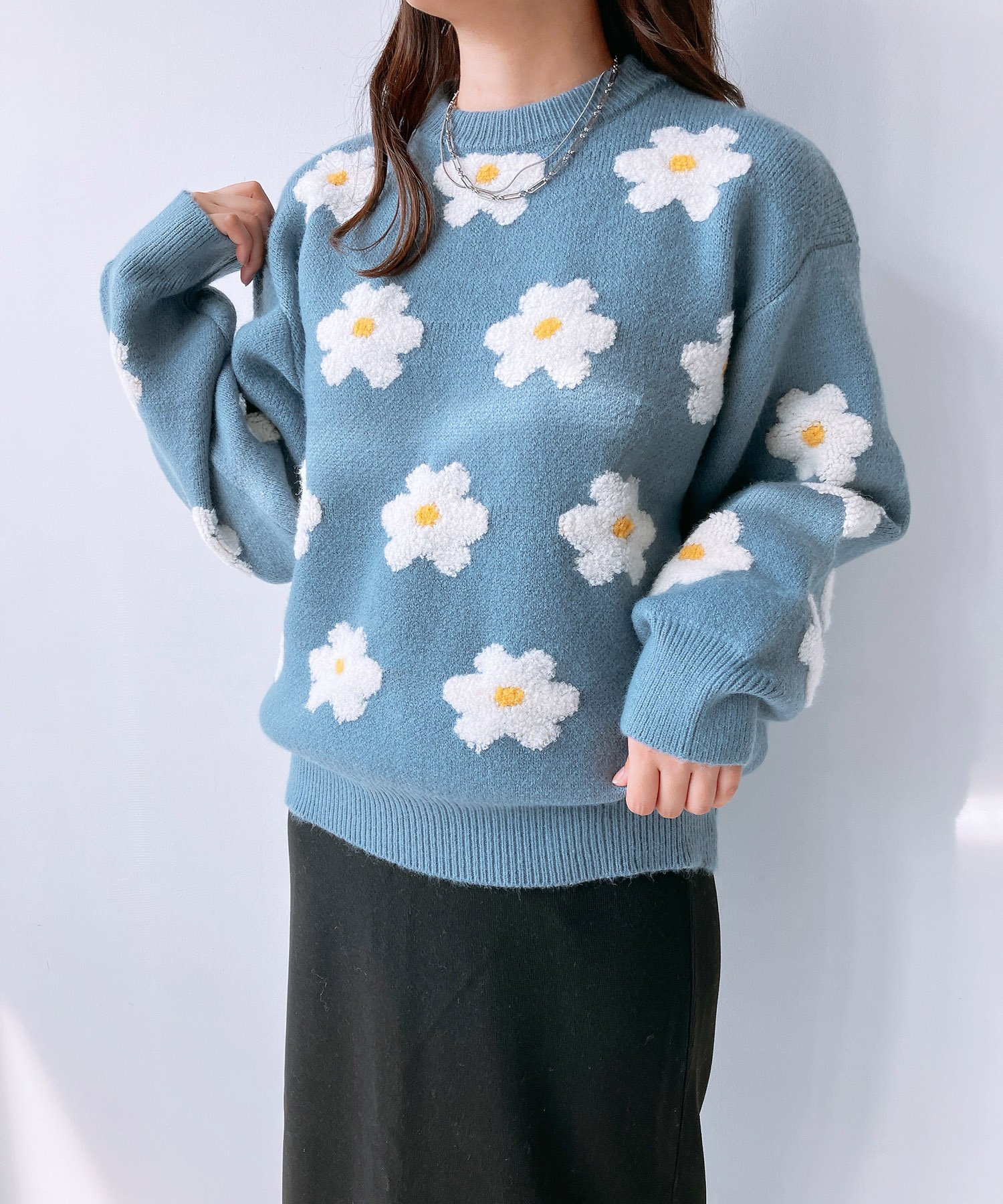 【SALE/48%OFF】AS KNOW AS plus ◇ぽこぽこデイジービッグサイズニットプルオーバー アズノゥアズプラス トップス シャツ・ブラウス グレー ブラック