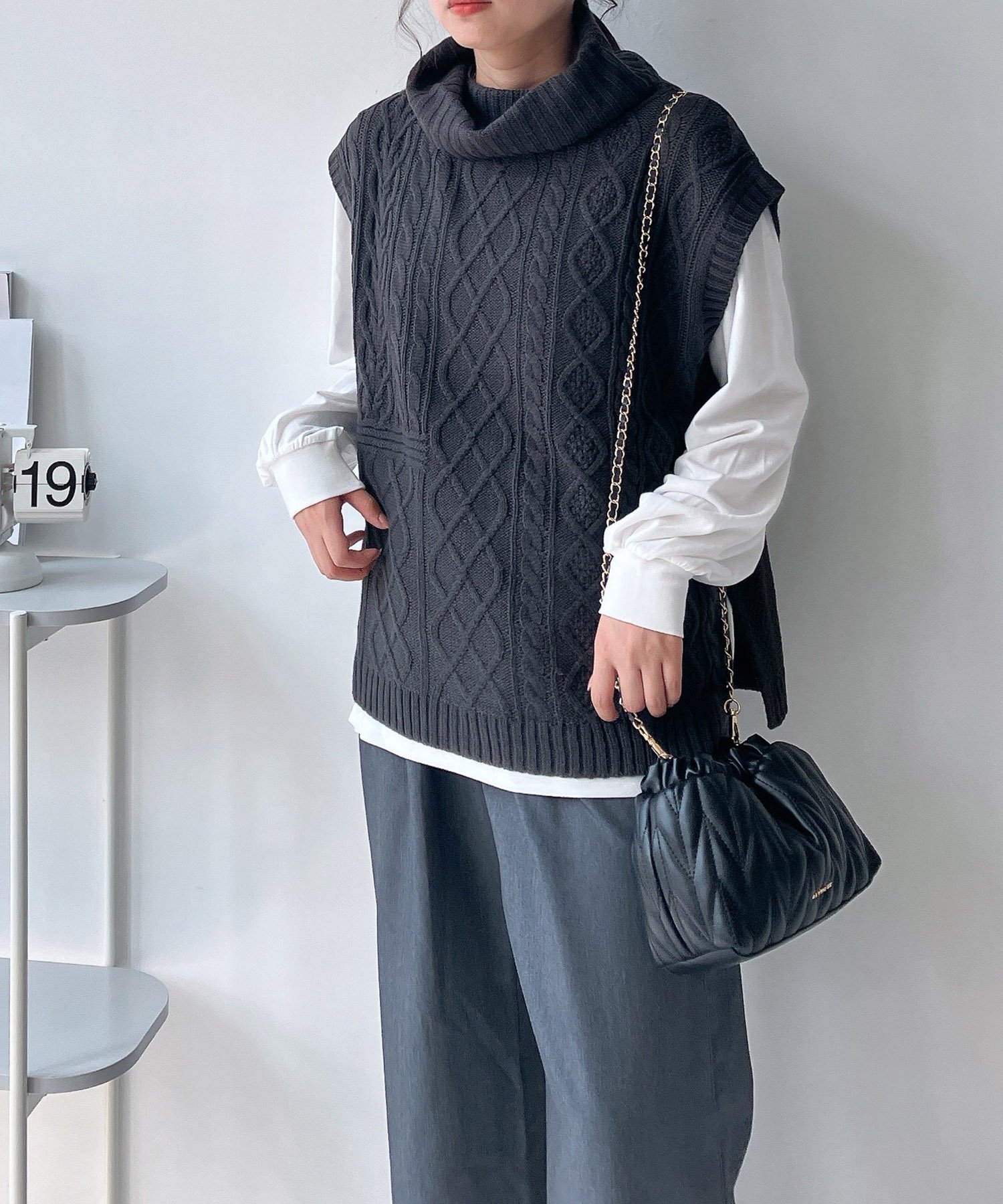 【SALE/54%OFF】AS KNOW AS plus ◇タートルベストとロンT 2点セットアイテム アズノゥアズプラス トップス カットソー・Tシャツ カーキグリーン ブラック グレー ブルー