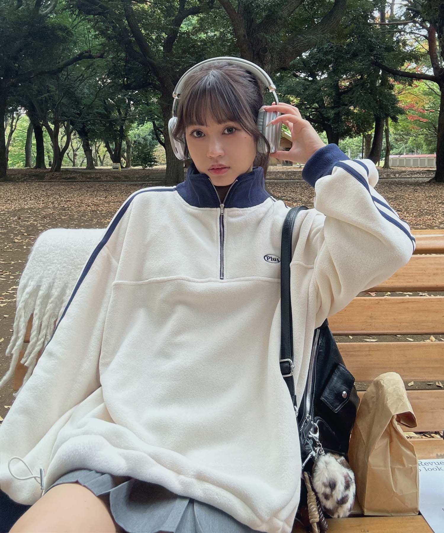 【SALE/44%OFF】AS KNOW AS plus ♪ワンポイントブランドロゴ ハーフジップ 袖ライン トラックプルオーバー アズノゥアズプラス トップス スウェット・トレーナー【送料無料】