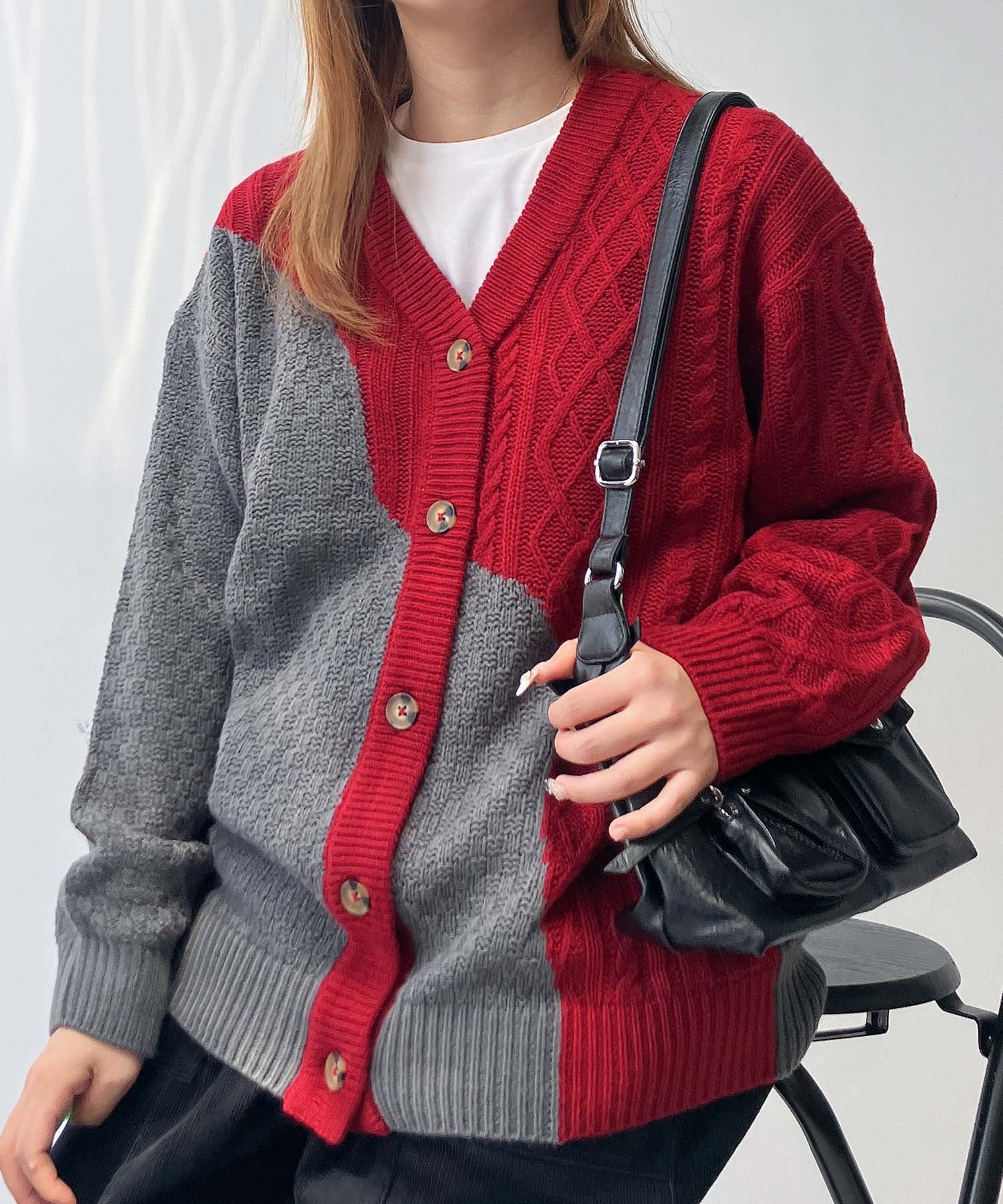 【SALE/48%OFF】AS KNOW AS plus ♪配色ウェーブ切り替えカーディガン アズノゥアズプラス トップス カーディガン