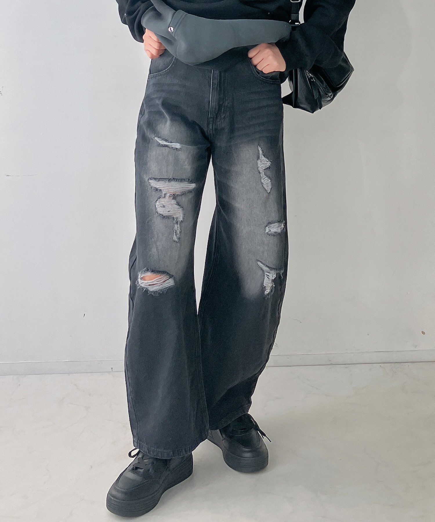 【SALE/26%OFF】AS KNOW AS plus ●アソートデザイン ワイドカーブワイドデニムパンツ アズノゥアズプラス パンツ ジーンズ・デニムパンツ ブラック【送料無料】