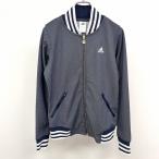 アディダス adidas カットソーブルゾン ジャケット ジップアップ 長袖 裏地無し ロゴ刺繍 ジップポケット ポリ100% S ブルー 青 レディース