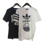 アディダス adidas 2点 セット Tシャツ カットソー 半袖 プリント コットン 白 黒 ホワイト ブラック L レディース