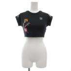 アディダスオリジナルス adidas originals クロップド 半袖 Tシャツ カットソー 3ストライプス 花刺繍 S 黒 ブラック DT8277 /GV