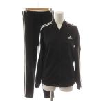 アディダス adidas セットアップ ジャージ トラックジャケット イージーパンツ ウエストゴム M 黒 ブラック /RR レディース
