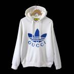 グッチ GUCCI アディダス コラボ 22SS パーカー トレフォイル エンブロイダリー フーディ プルオーバーパーカ M 白 ブルー 国内正規品