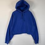 古着 アディダス adidas パーカー トレフォイルロゴ ワンポイント ショート丈 短丈 フーディ フード紐 M ブルー レディース