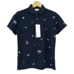 アディダスゴルフ ポロシャツ トップス 半袖 総柄 ゴルフウエア 未使用品 レディース Mサイズ 紺×赤×白 adidas GOLF