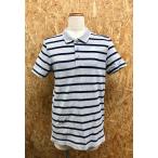アディダス adidas ポロシャツ 鹿の子 ボーダー柄 ロゴプリント 半袖 カットソー 綿×ポリエステル M ヘザーグレー×ネイビー レディース