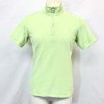 アディダス adidas ポロシャツ カットソー 鹿の子 ロゴ刺繍 ハイネック ハーフジップ 半袖 ポリエステル×綿 M グリーン 緑 レディース