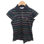 アディダス adidas ポロシャツ ネイビー 紺色 ストライプ柄 スタンドカラー 半袖 /PP ■GY58 レディース