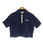 アディダスオリジナルス adidas originals ポロシャツ ハーフジップ 半袖 ショート丈 ロゴ刺繍 L ネイビー /MY ■OS レディース