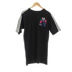 ◇ Θ Φ adidas アディダス マーク コットン100% 半袖 Tシャツ カットソー サイズL ブラック レディース P 【中古】