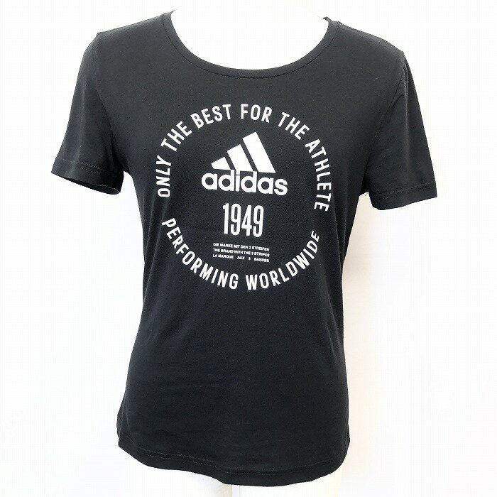 【楽天スーパーSALE限定!! \★35%OFF★/対象商品|12月4日(木)20時00分〜12月11日(木)01時59分まで】【新品】adidas アディダス M レディース 女性 Tシャツ カットソー ロゴプリント Uネック 半袖 ショートスリーブ 綿100% ブラック 黒