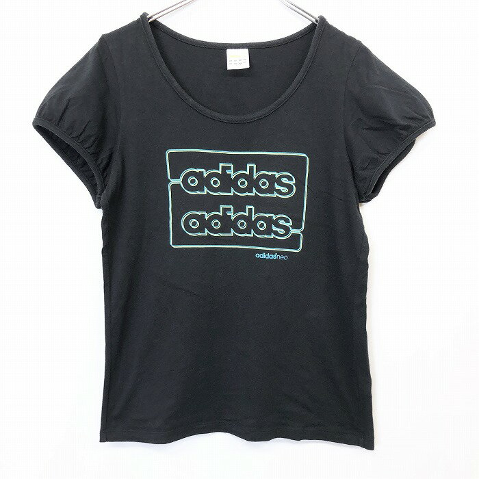 【楽天スーパーSALE限定!! \★35%OFF★/対象商品|12月4日(木)20時00分〜12月11日(木)01時59分まで】【中古】adidas アディダス M レディース Tシャツ カットソー ロゴ プリント ネオンサイン風 英字 Uネック 半袖 綿100% コットン ブラック 黒