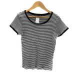 アニエスベー agnes b. リブカットソー 半袖 ラウンドネック ボーダー柄 2 黒 ブラック 白 ホワイト /YS30 レディース