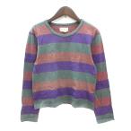 アニエスベー agnes b. カットソー Tシャツ クルーネック ボーダー 長袖 2 M 紫 パープル 緑 グリーン /MN レディース