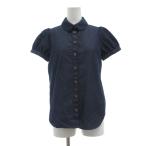トゥービーバイアニエスベー To b. by agnes b. デニムシャツ 36 青 ブルー 丸襟 パフスリーブ 半袖 /SX ■GY60 レディース