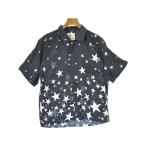 アニエスベー agnes b. シャツ ワンピース 開襟 ひざ丈 花柄 サテン 総柄 半袖 38 紺 ネイビー ■GY14 レディース
