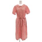 アニエスベー agnes b. シャツワンピース ヒッコリーストライプ 半袖 ベルト マキシ ロング 40 赤 レッド 白 ホワイト /JS ■GY60