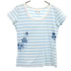 古着 agnes b. アニエスベー 日本製 フラワープリント ボーダー柄 フレンチスリーブ Tシャツ 1 ホワイト レディース 【中古】