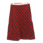 アニエスベー agnes b. スカート ウール 38 赤 黒 ブラック 白 ホワイト チェック柄 サイドボタン 膝下丈 /SX ■ECG003 レディース