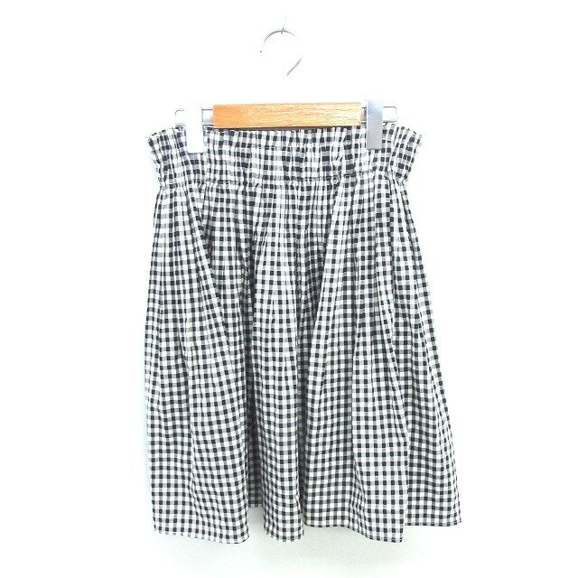【中古】トゥービーバイアニエスベー To b. by agnes b. フレア プリーツ スカート チェック ひざ丈 ウエストゴム TU ブラック アイボリー 黒 /TT レディース 【ベクトル 古着】 250524