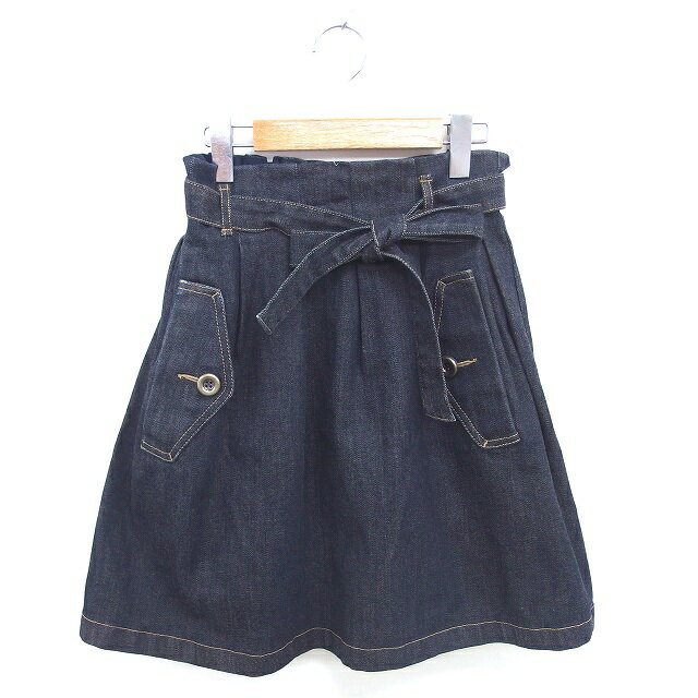 【中古】トゥービーバイアニエスベー To b. by agnes b. デニム スカート フレア ひざ丈 ウエストリボン TU 紺 ネイビー /TT11 レディース 【ベクトル 古着】 250815
