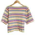 未使用 agnes b アニエスベー マルチボーダー ボートネック ショートスリーブ ニット カットソー 1 マルチカラー レディース 古着 中古