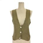 アニエスベー agnes b. ニット ベスト Vネック ヘンプ イタリア製 カーキ系 2 レディース
