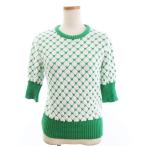 アニエスベー agnes b. 美品 ニット セーター 五分袖 総柄 白 ホワイト 緑 グリーン イ ■FF レディース