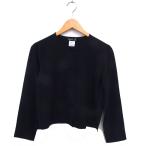 アニエスベー agnes b. ノーカラー シャツ ブラウス スリット クロップド 無地 長袖 2 黒 ブラック /NT9 レディース