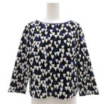 美品 agns b. アニエスベー フラワープリントブラウス 36 ネイビー レディース 古着 中古