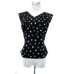 アニエスベー agnes b. ブラウス カットソー Vネック ノースリーブ ドット柄 リボンベルト付き 1 S 黒 ブラック ベージュ レディース