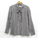アニエスベー 長袖シャツ チェック柄 リボン ブラウス ボウタイ トップス レディース 42サイズ グレー系/ホワイト系 agnes b.