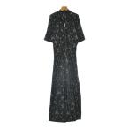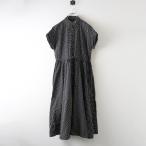 トゥービーバイアニエスベー To b. by agnes b. フレアワンピース ミモレ ロング 半袖 フレンチスリーブ レギュラーカラー 花柄 36 黒