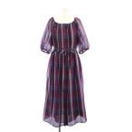 未使用品 トゥービーバイアニエスベー To b. by agnes b. フレアワンピース ミモレ ロング 五分袖 Uネック チェック柄 38 紫 パープル