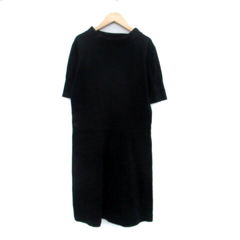 【中古】アニエスベー agnes b. ワンピース ラウンドネック 半袖 ミモレ丈 2 M 黒 ブラック /HO34 レディース 【ベクトル 古着】 250327