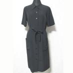 美品 agnes b. アニエスベー 半袖 ひざ丈 ベルテッド シャツワンピース 38 ブラック レディース 古着 中古