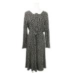 アニエスベー agnes b. ワンピース 襟付き ロング 長袖 ストレッチ 花柄 総柄 リボン 3 L 黒 ブラック /AO7 レディース