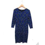 アニエスベー agnes b. フラワープリント ワンピース タイト ひざ下 ストレッチ ドット 長袖 2 青 ブルー /NT35 レディース