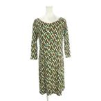 アニエスベー agnes b. 柄 ワンピース 7分袖 ひざ丈 Vネック タイト 1 ブラック 黒 /FT37 レディース
